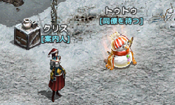 NPC「クリス」から「クリスマス棒の箱」を貰い、その後トゥトゥに話しかけることで専用のダンジョンへ移動することができます。