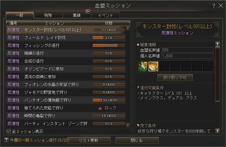 イベント期間中は、「一般」の血盟ミッションを対象に