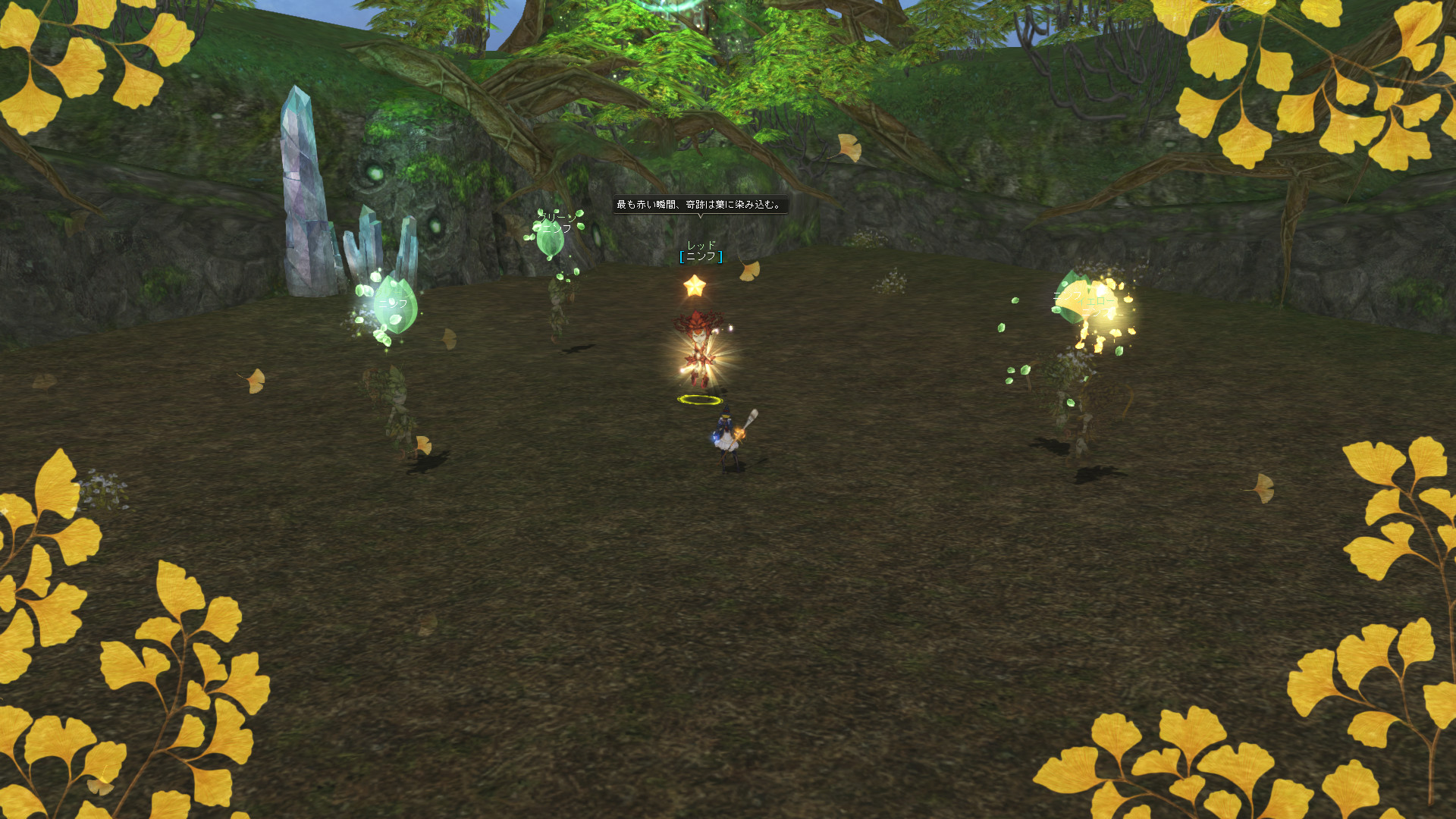 入場すると「グリーン ニンフ」、「イエロー ニンフ」、「レッド ニンフ」が現れます。