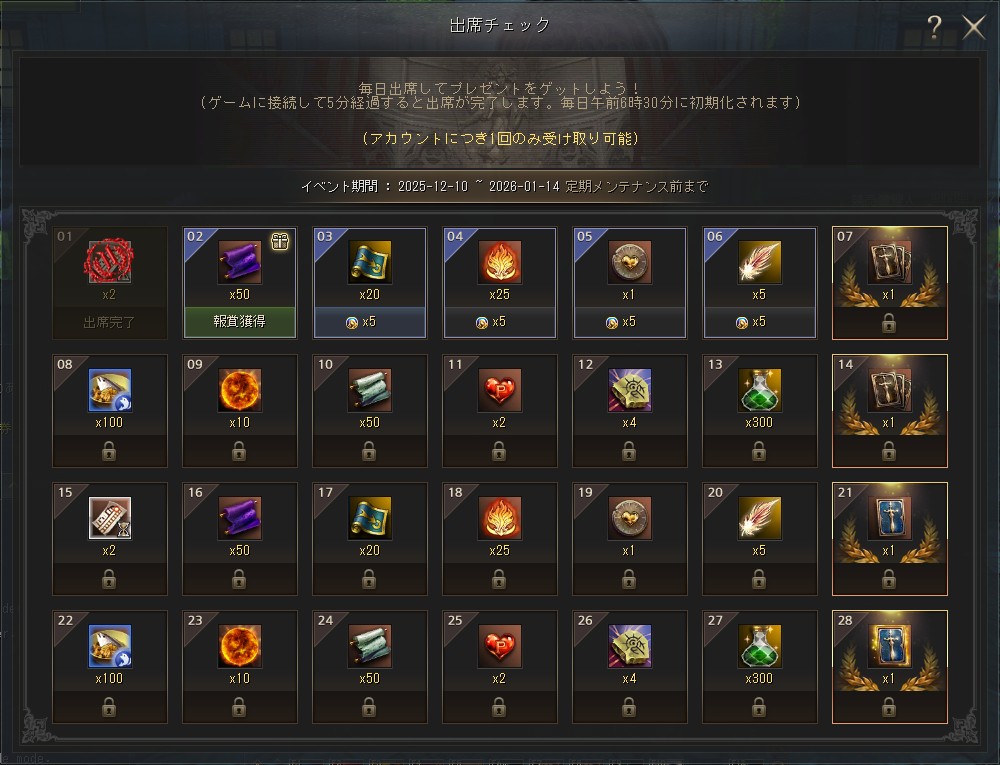※ログインしていてもプレゼントを受け取らなかった場合、翌日も同じプレゼントが維持されます。