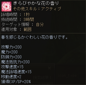 周囲のキャラクターは「きらびやかな花の香り」強化魔法を受けることができます。