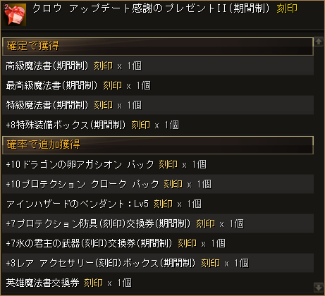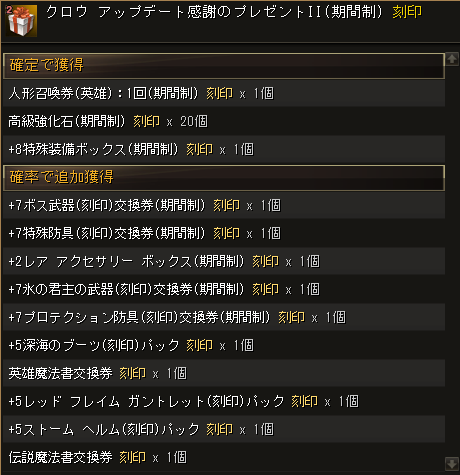 クロウアップデート感謝のプレゼントII(期間制)(刻印)![]() |