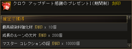クロウアップデート感謝のプレゼントI(期間制)(刻印)![]() |