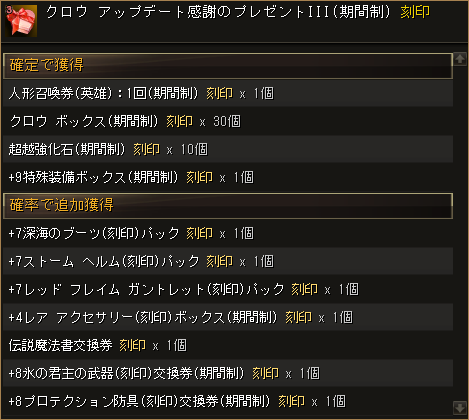 クロウアップデート感謝のプレゼントIII(期間制)(刻印)![]() |