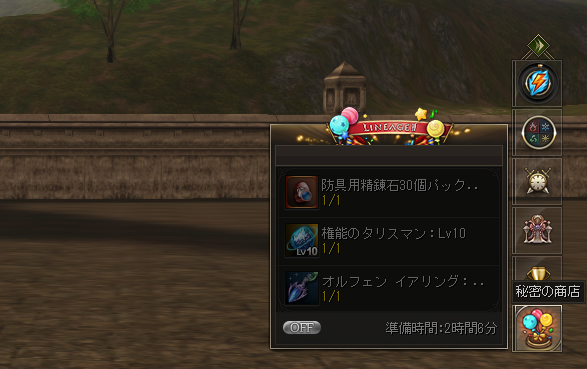秘密の商店チケット(期間限定)刻印 | 1 | 1日150個 | 500,000アデナ |